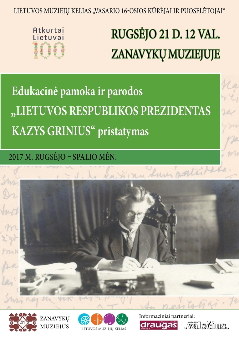 Educational lesson and exhibitions Presentation by KAZYS GRINIUS, President of the Republic of Lithuania