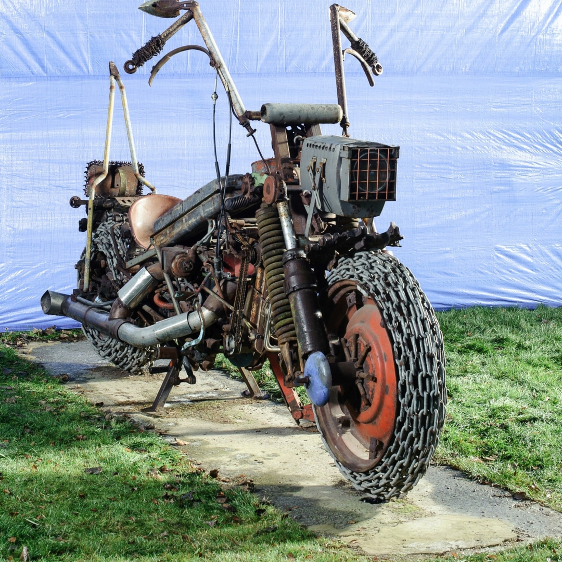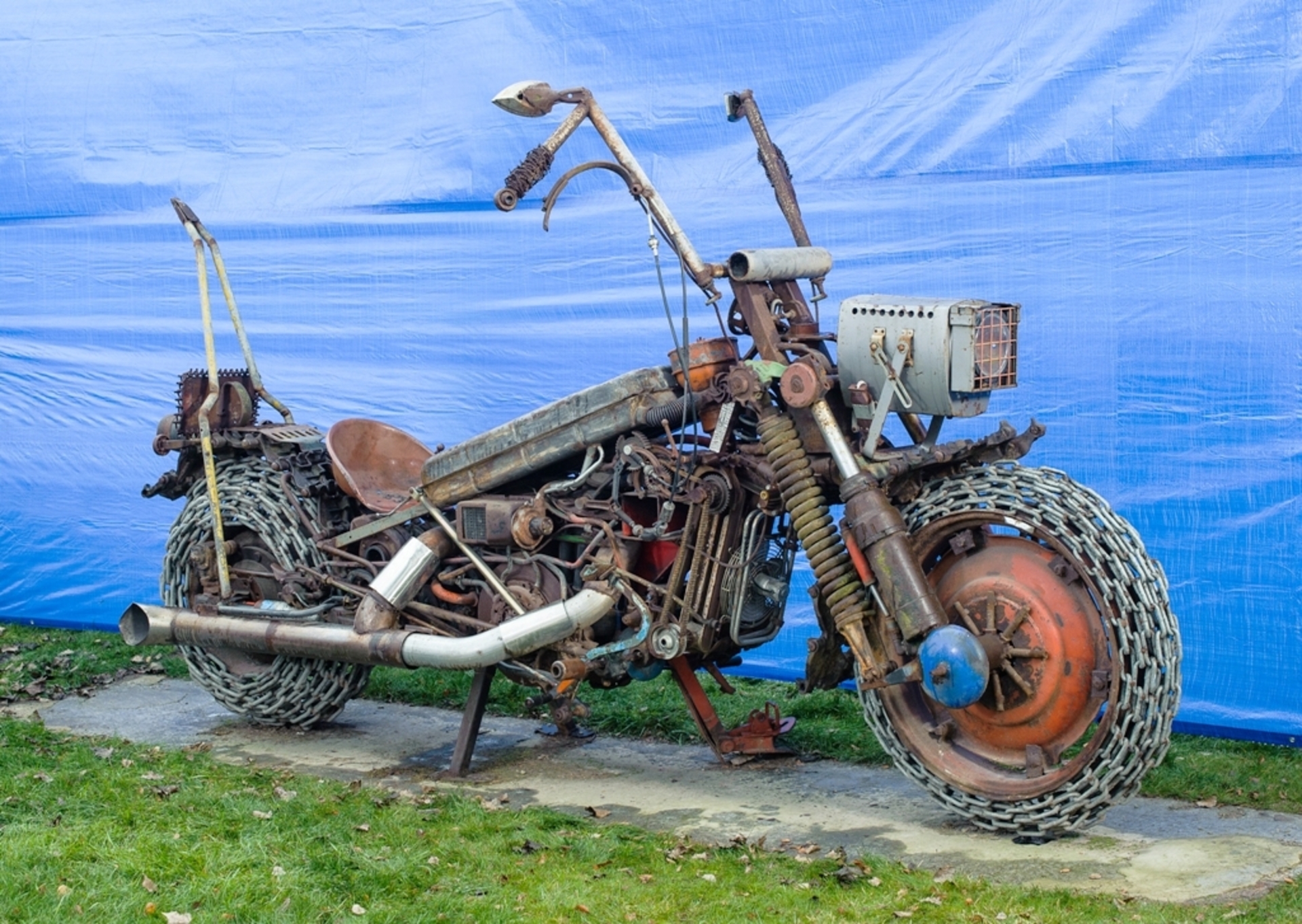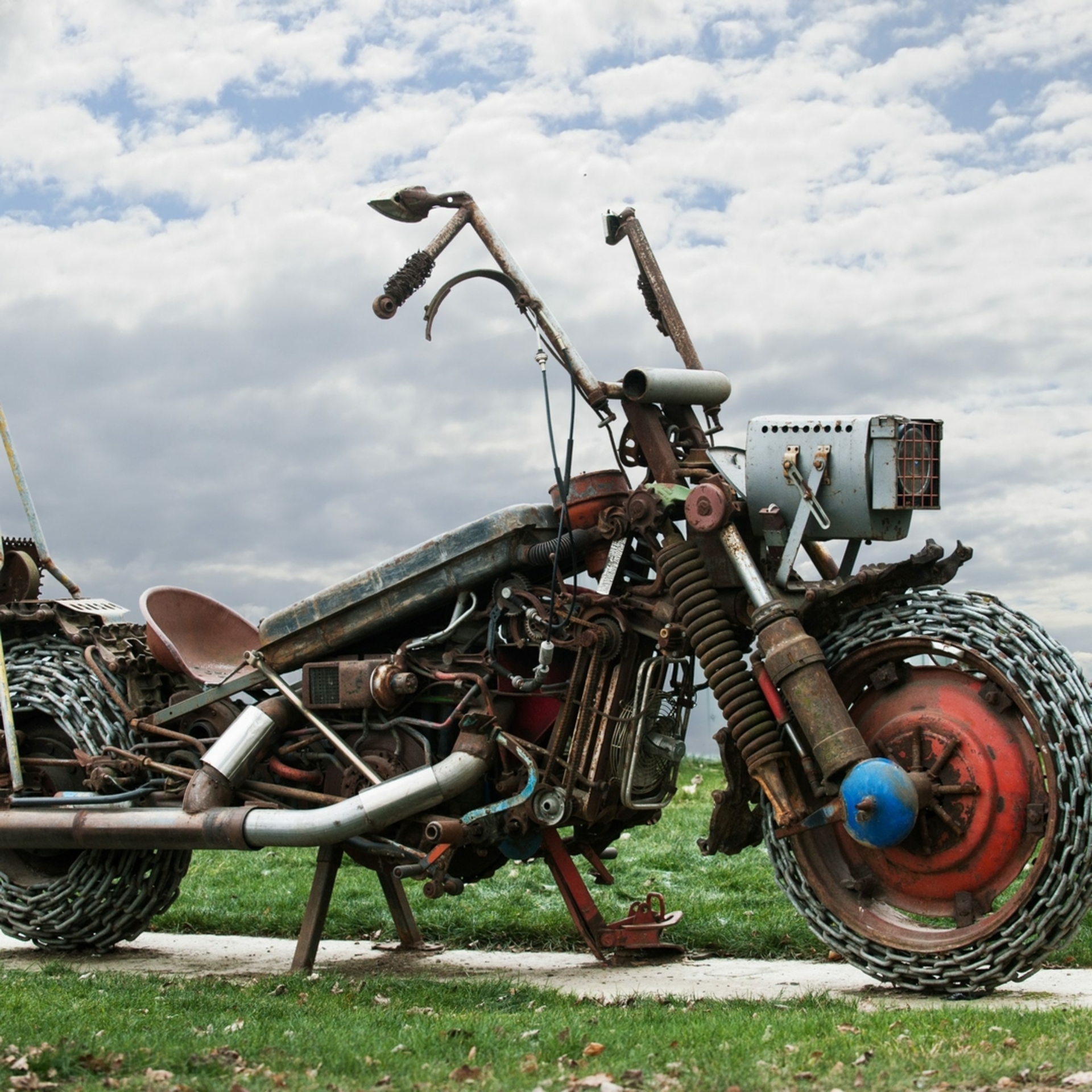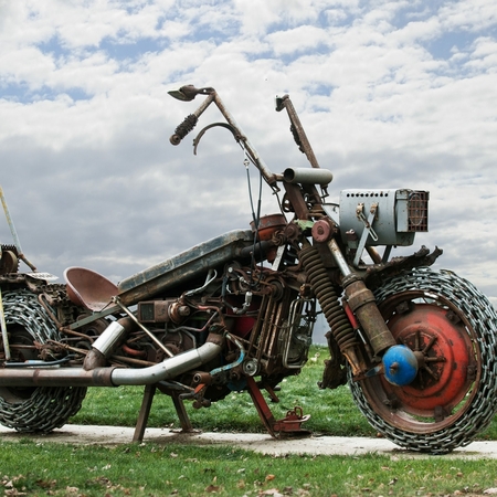 Didžiausio motociklo skulptūra pagaminta iš įvairių naudotų metalinių detalių. Skulptūros autorius Renaldas Darius Dulinskas.