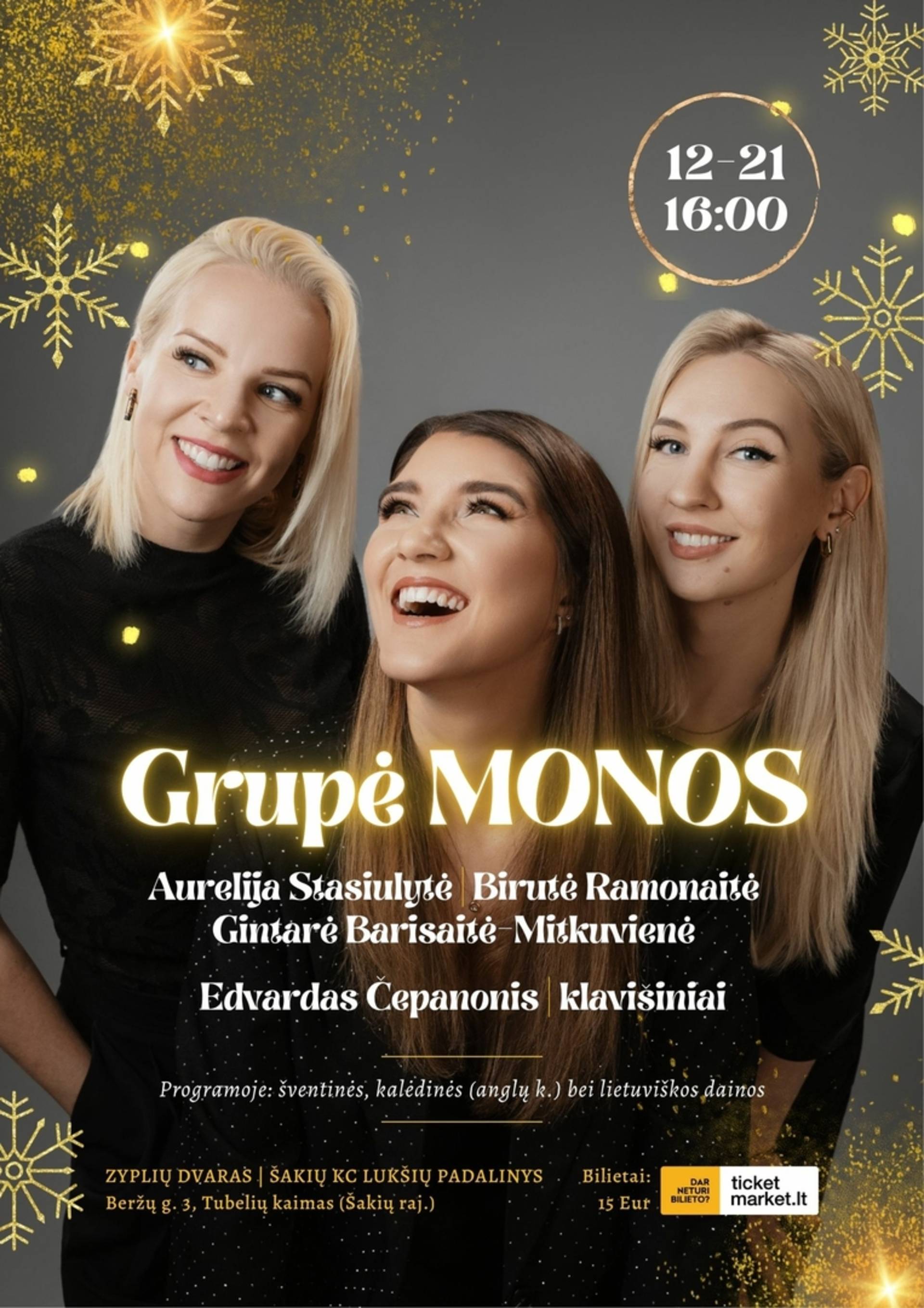 Merginų grupė MONOS gruodžio 21 d. 16 val. Zyplių dvare surengs šventinės muzikos koncertą.
