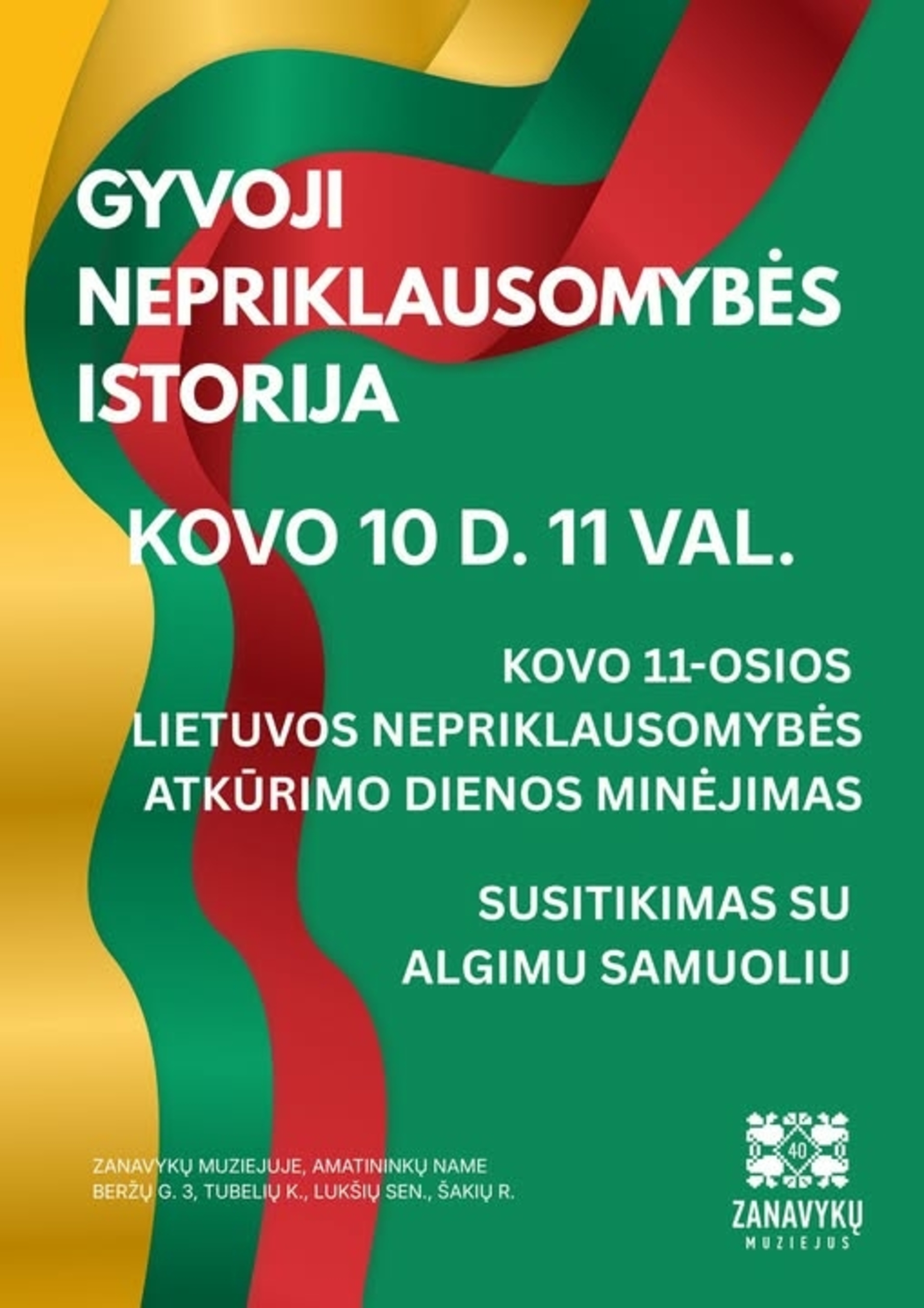 Minint Lietuvos nepriklausomybės atkūrimo dieną, kviečiame į renginį „Gyvoji nepriklausomybės istorija“ – prasmingą susitikimą su Lietuvos Respublikos laisvės gynėju Algimu Samuoliu, Lietuvos kariuomenės kūrėjų savanorių sąjungos Vinco Kudirkos (LKKSSVK) Marijampolės skyriaus nariu.