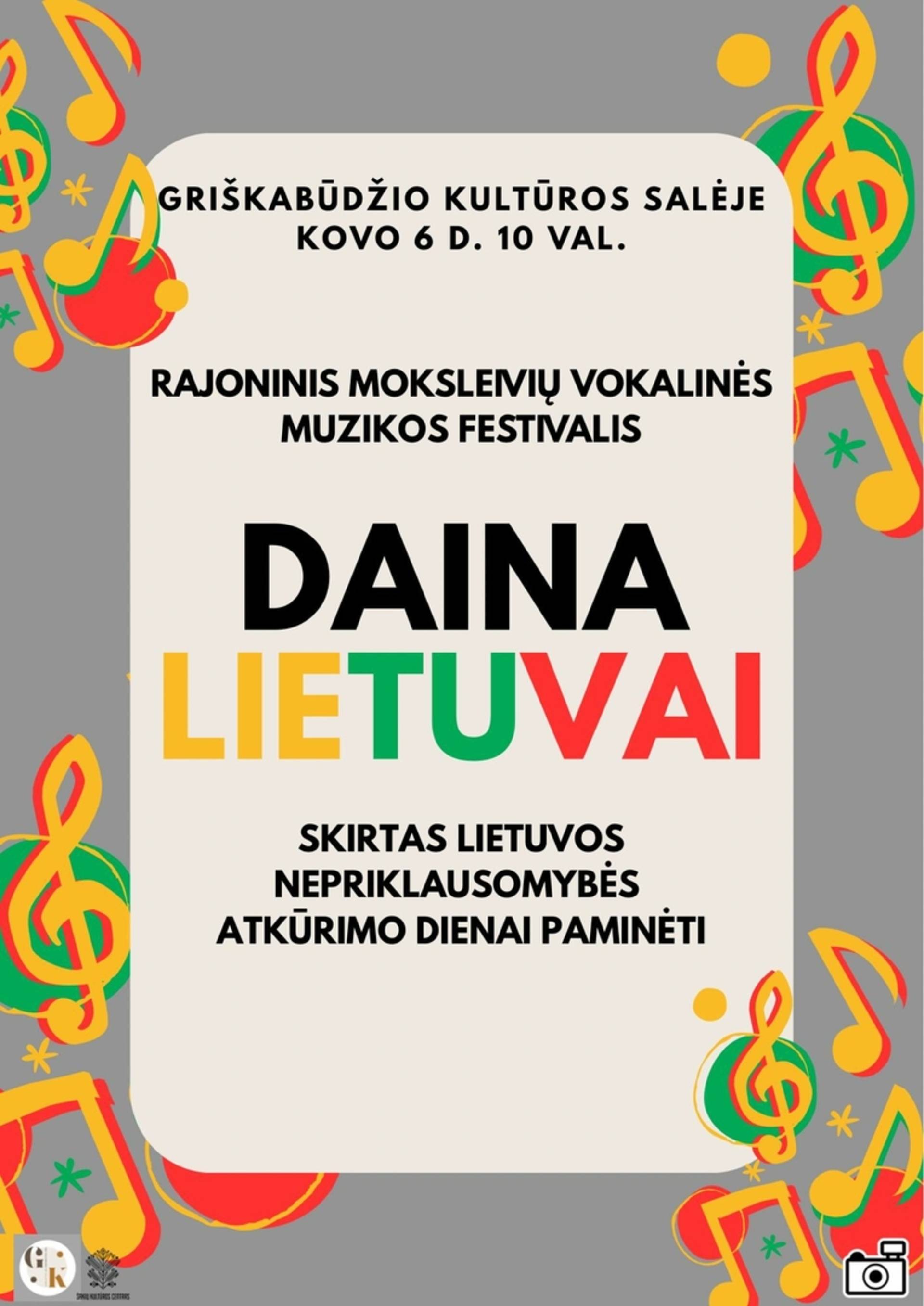 Rajoninis moksleivių vokalinės muzikos festivalis. Daina Lietuvai.