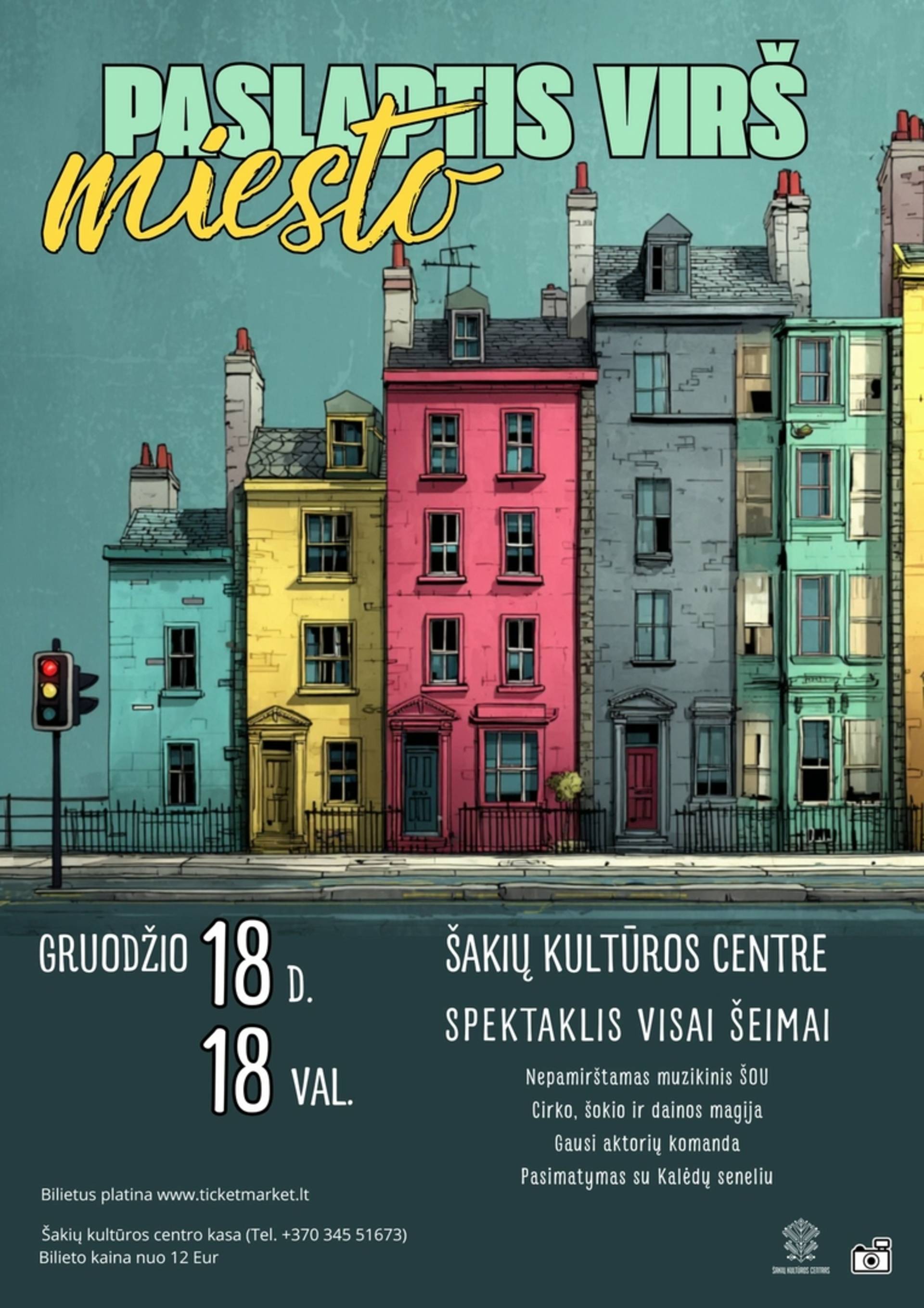Šakių kultūros centras kviečia į susitikimą su žaisminguoju Astrid Lingren knygos veikėju Karlsonu. Daugeliui gerai žinomi šio kūrinio veikėjai atgims su naujomis ir netikėtomis interpretcijomis. Spektaklyje „PASLAPTIS VIRŠ MIESTO“ gausu muzikos, šokio, teatro ir cirko elementų, kurie papildo vienas kitą bei sukuria paslaptingus vaizdus. Režisierė Laura Saunorienė.