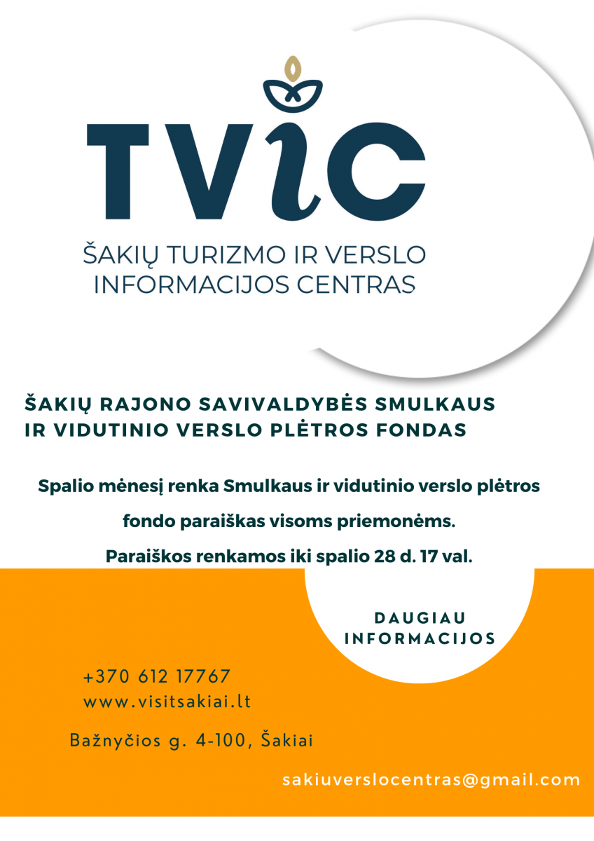 Informuojame, kad spalio mėnesį renkame Smulkaus ir vidutinio verslo plėtros fondo paraiškas visoms priemonėms. Paraiškos bus priimamos iki spalio mėn. 28 d. 17:00 val.