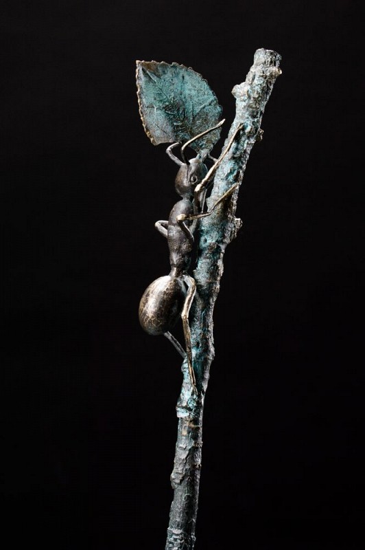 Nugalėtojas apdovanojamas skulptoriaus Kęstučio Dovydaičio kurtą Verslo skruzde.